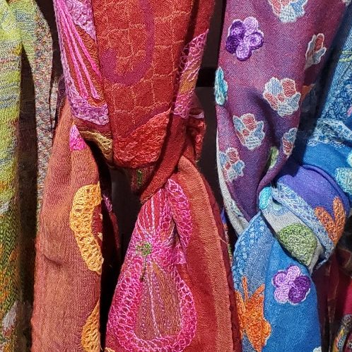 Bien chaude pour l’hiver, couleurs harmonieuses, franges pour la fantaisie, motifs floraux